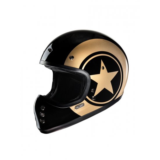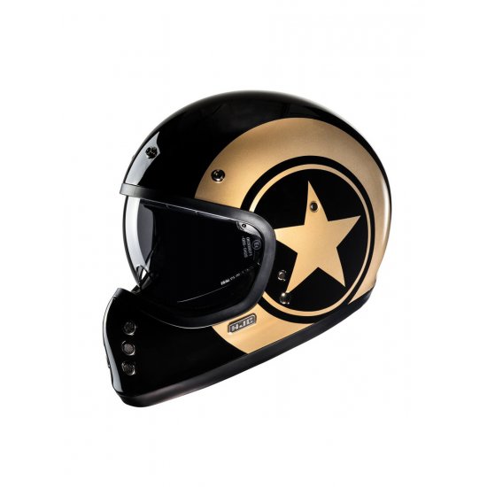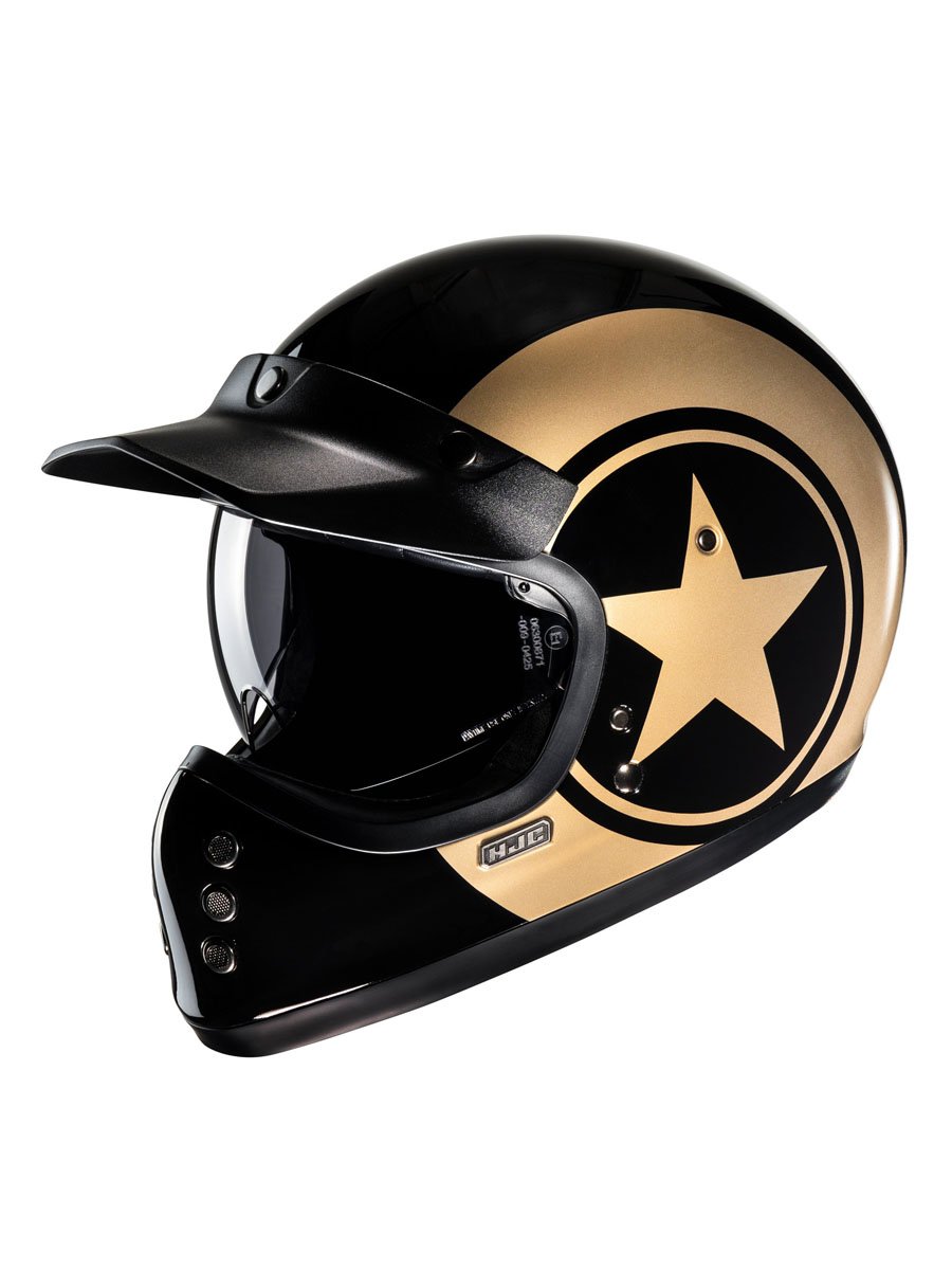 Classic styling with a modern twist, the HJC V60 adds a brand-new category of helmets to our off-road lineup for 2022. Inspired by the original FG-01 from the 1980s, the V60 goes beyond the vintage look with new-age features such as a lightweight fiberglass shell, a large inner IS-10 sun visor, built-in speaker pockets, removable and washable interior, and emergency release cheek pads for extra safety. The V60 also includes a removable 3-snap peak visor to complete the retro look.