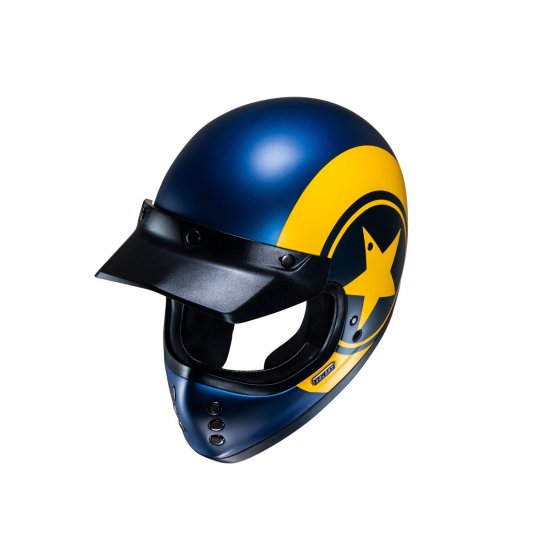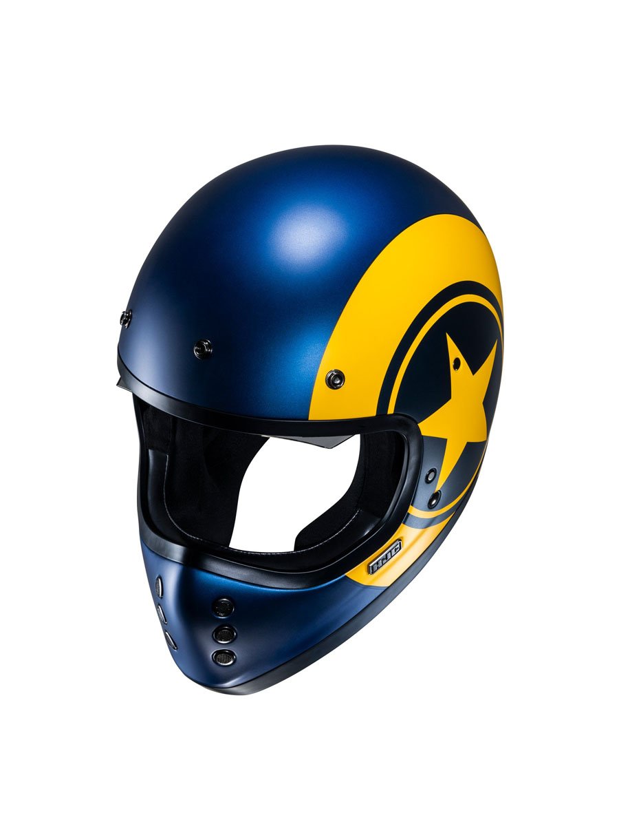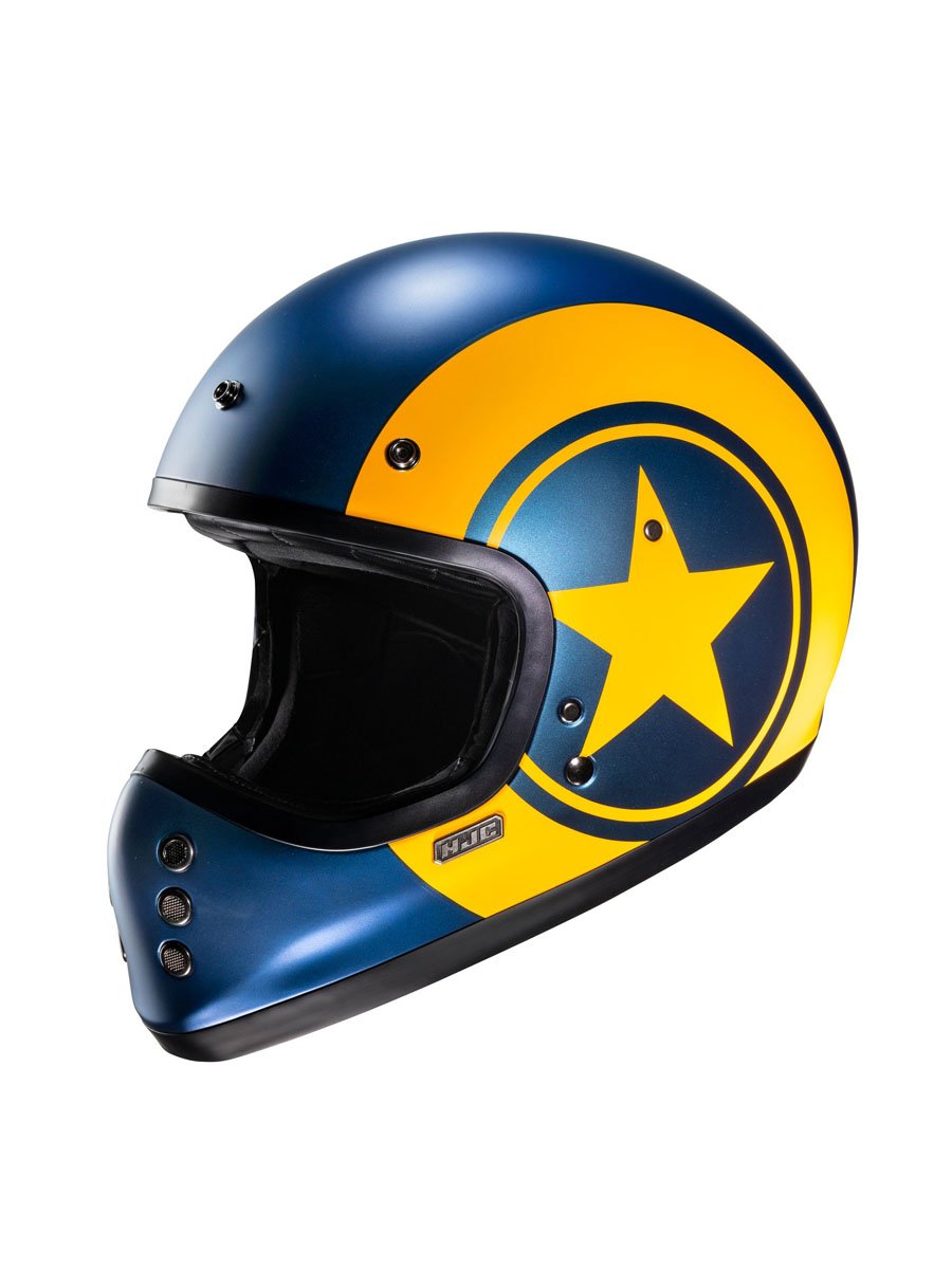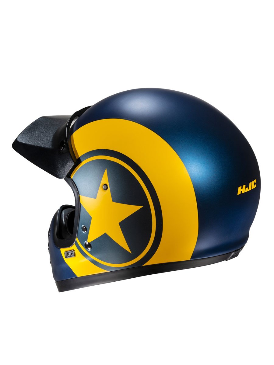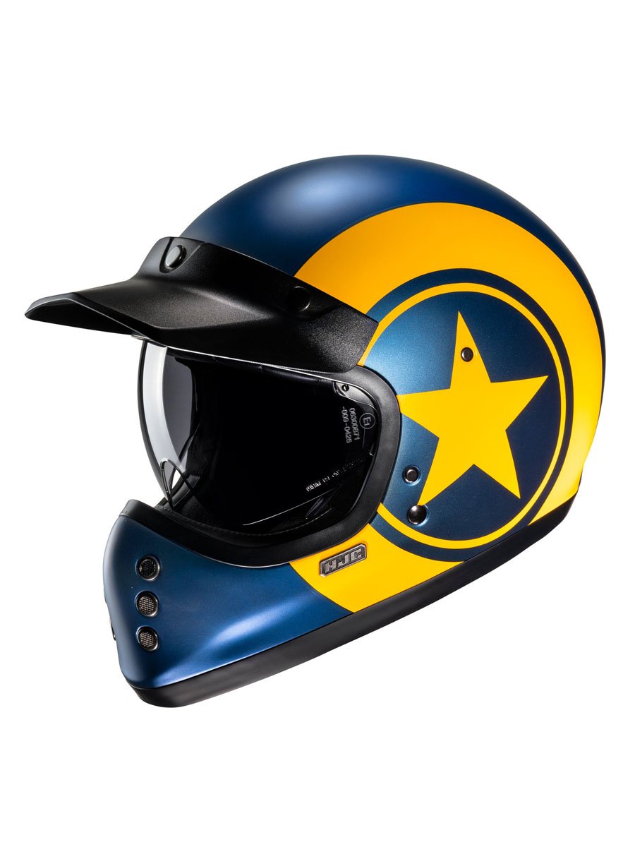 Classic styling with a modern twist, the HJC V60 adds a brand-new category of helmets to our off-road lineup for 2022. Inspired by the original FG-01 from the 1980s, the V60 goes beyond the vintage look with new-age features such as a lightweight fiberglass shell, a large inner IS-10 sun visor, built-in speaker pockets, removable and washable interior, and emergency release cheek pads for extra safety. The V60 also includes a removable 3-snap peak visor to complete the retro look.